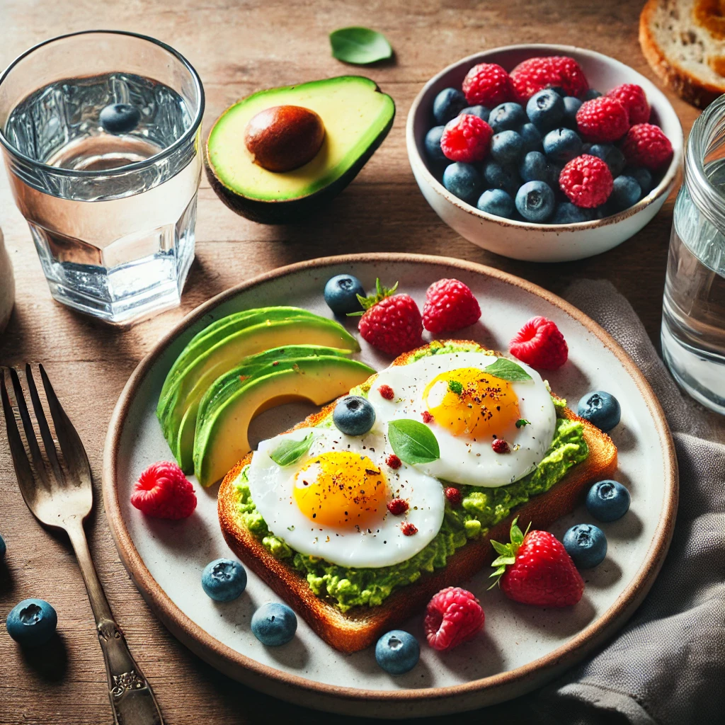 아보카도 토스트: 통곡물 빵 위에 잘 익은 아보카도를 으깨 올립니다. 레몬즙과 약간의 소금, 후추를 뿌려 맛을 더합니다.