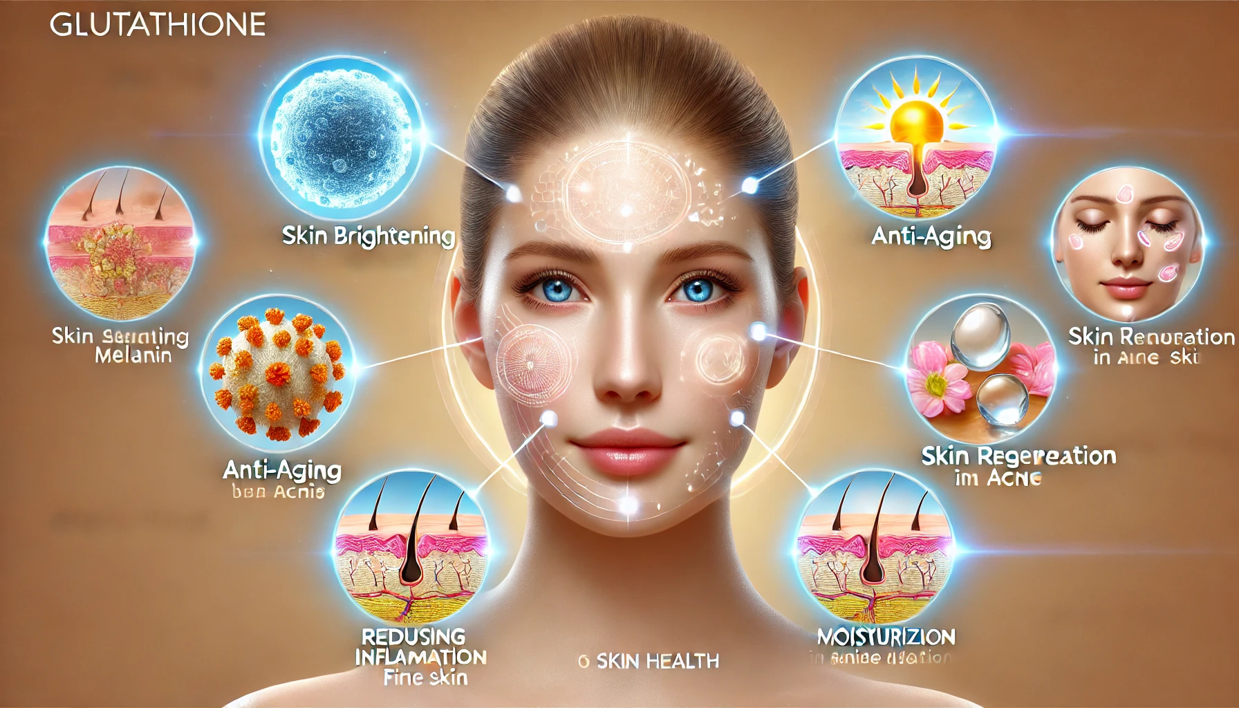 글루타치온은 피부 건강에 특히 유익한 효능을 가지고 있습니다. 글루타치온이 피부에 미치는 주요 효능은 다음과 같습니다: