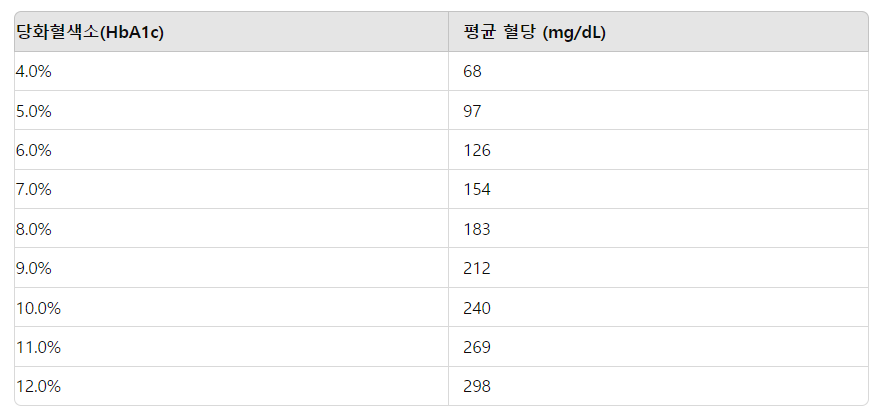 당화혈색소 수치표