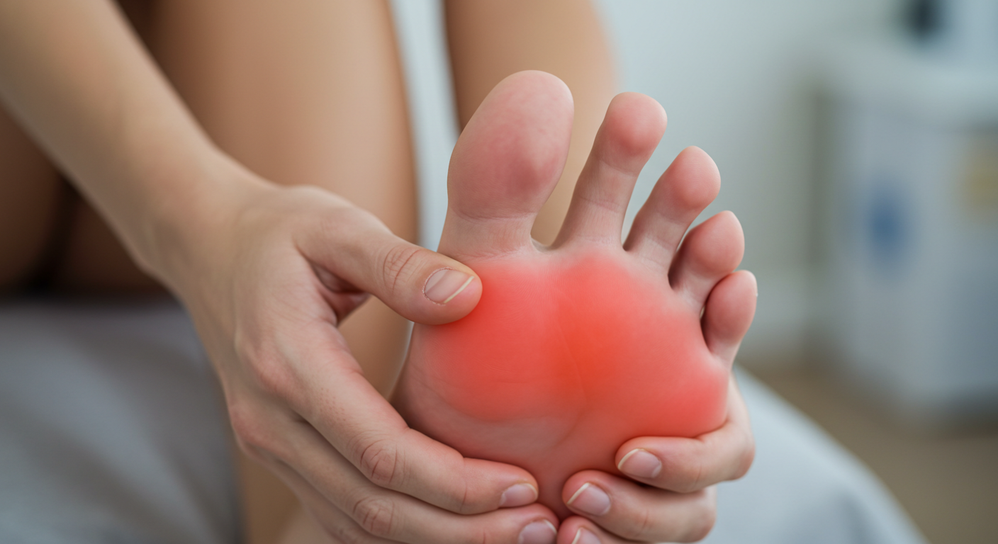 -급성 통증: 특히 발등과 발바닥 관절에 날카로운 통증이 느껴질 수 있어요. 가만히 있어도 욱신거리거나, 발을 움직일 때마다 통증이 심해지는 경우가 많아요.