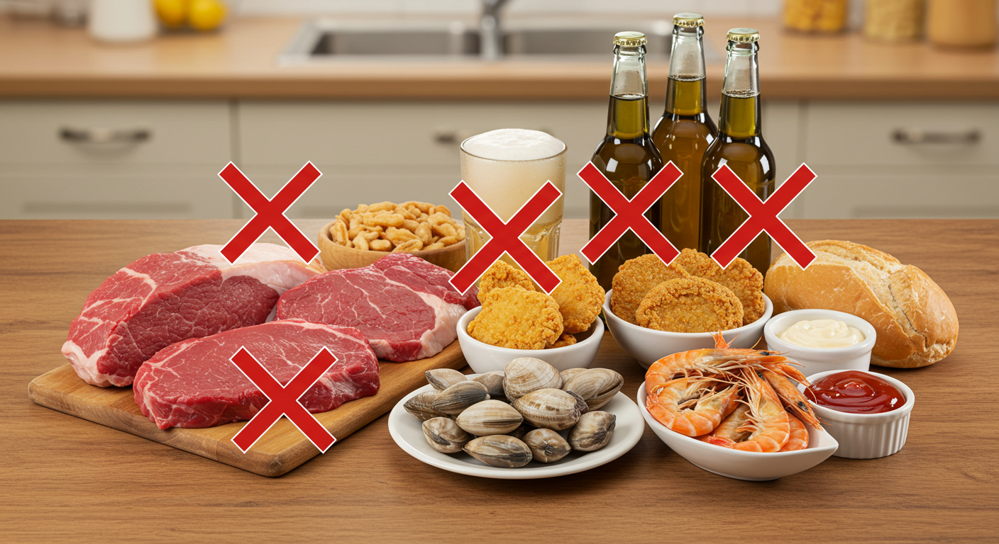 특히 육류, 해산물, 맥주 같은 음식을 과도하게 섭취하면 위험해요.