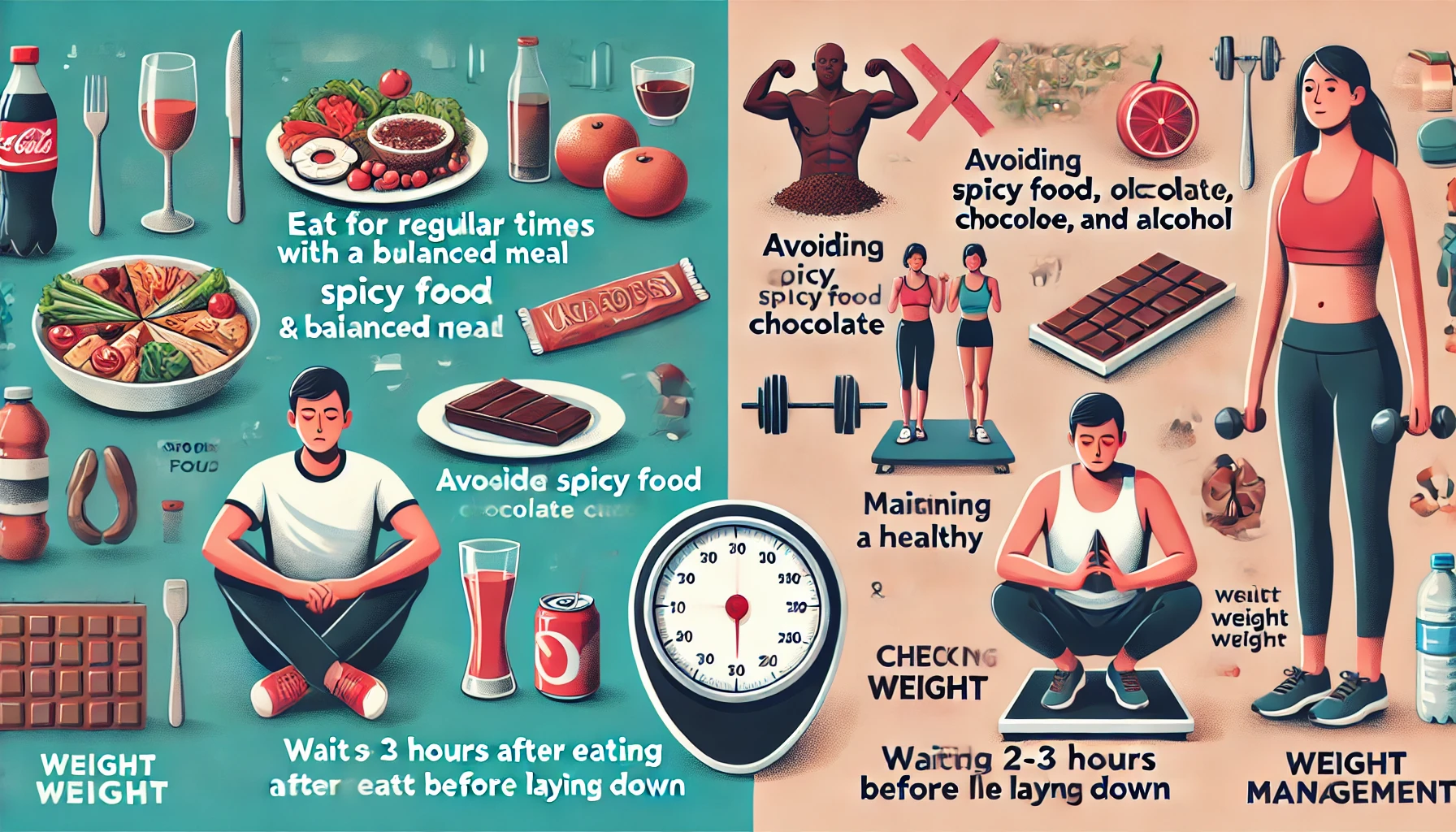 식사 후 바로 눕거나 운동을 하면 위산이 식도로 역류할 가능성이 높아집니다. 식사 후 적어도 2-3시간 후에 눕는 것이 좋으며, 식사 직후에는 격한 운동을 피하는 것이 좋습니다.