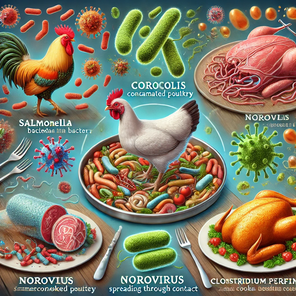 - 발생 원인: 덜 익힌 가금류, 오염된 물, 비살균 유제품