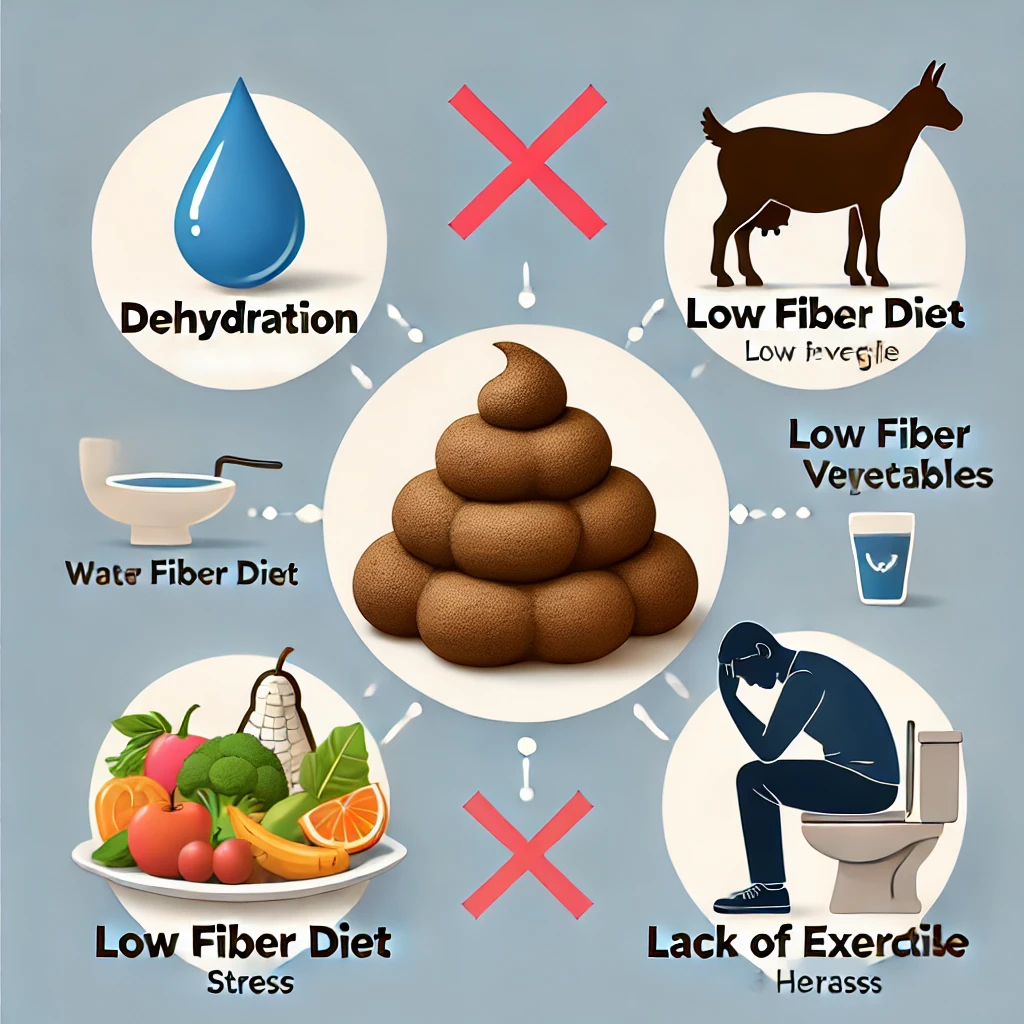 염소똥 형태의 변비는 주로 다음과 같은 원인으로 발생할 수 있습니다