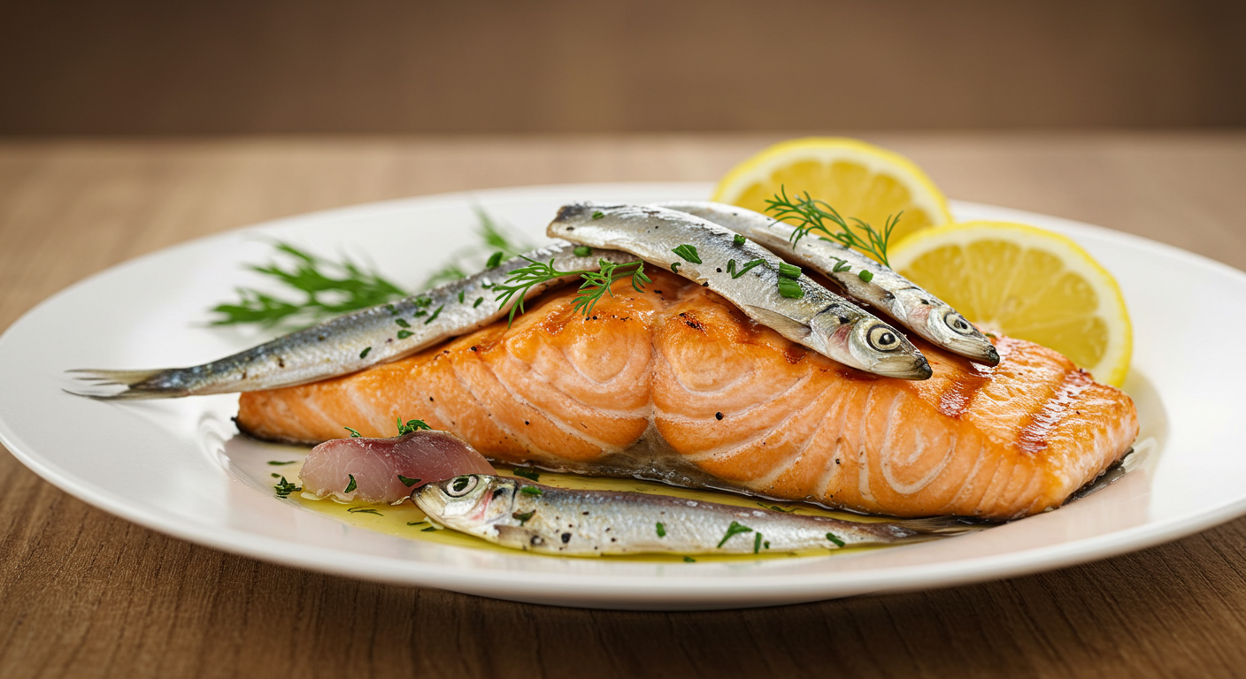 1) 해산물 (고등어, 연어, 정어리 등)