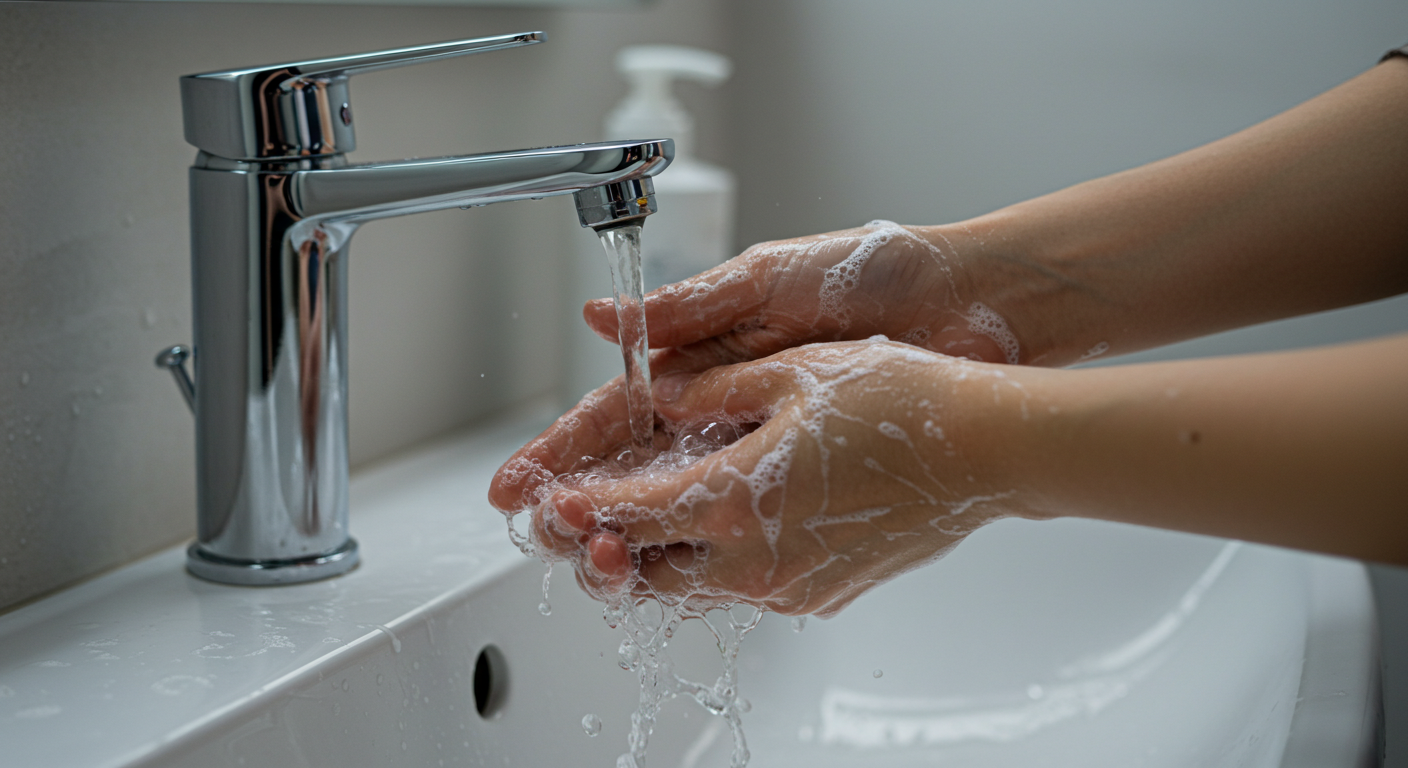 외출 후, 화장실 사용 후, 음식을 만들기 전에는 꼭 손을 깨끗이 씻어야 해요.